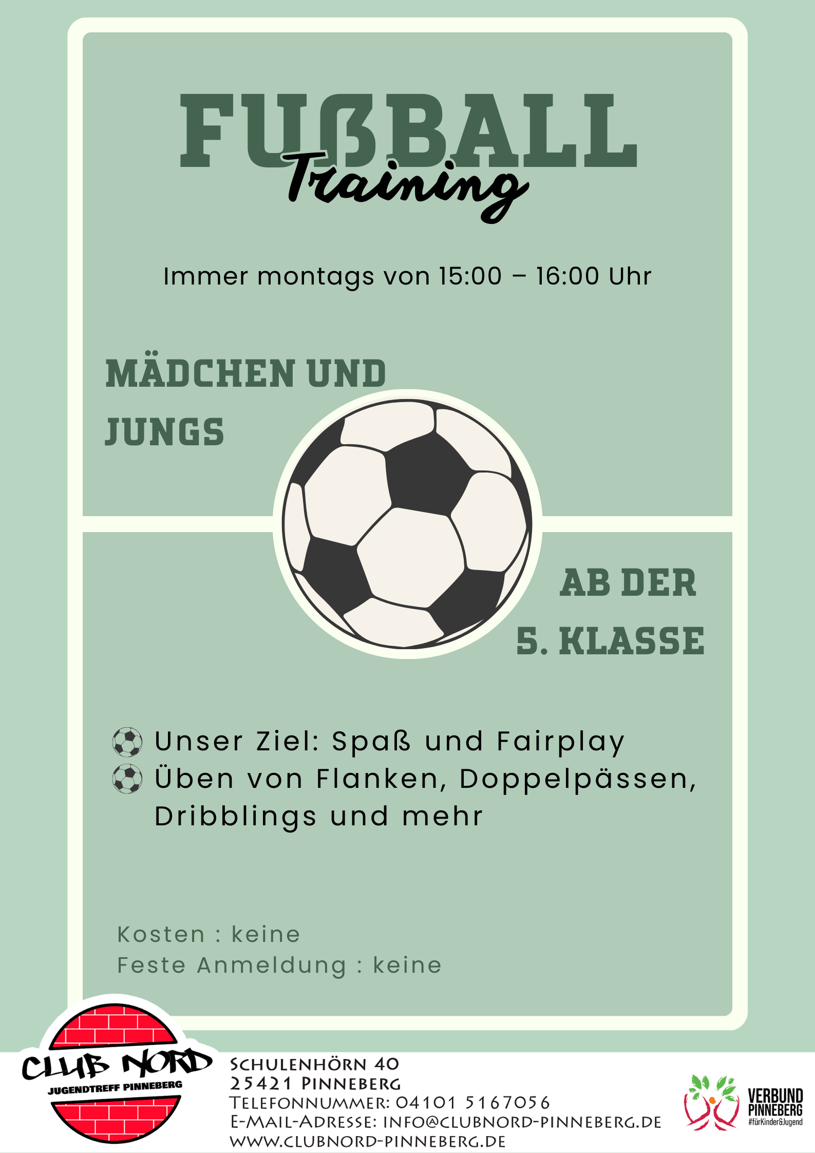 Die Fussball AG findet montags von 15:00 – 16:00h statt.